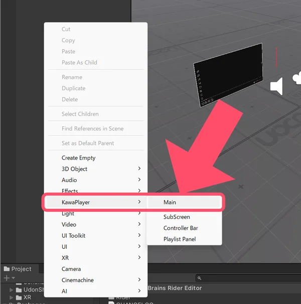 - Unity メニュー: GameObject > KawaPlayer > Main