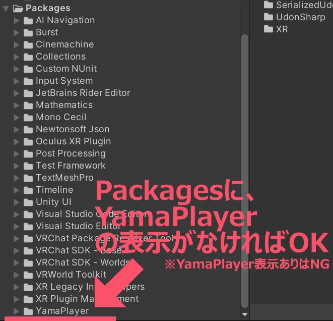 Packages/net.kwxxw.yama-stream/が残っていないことを確認(Unity 上ではPackages/YamaPlayerと表示されます)