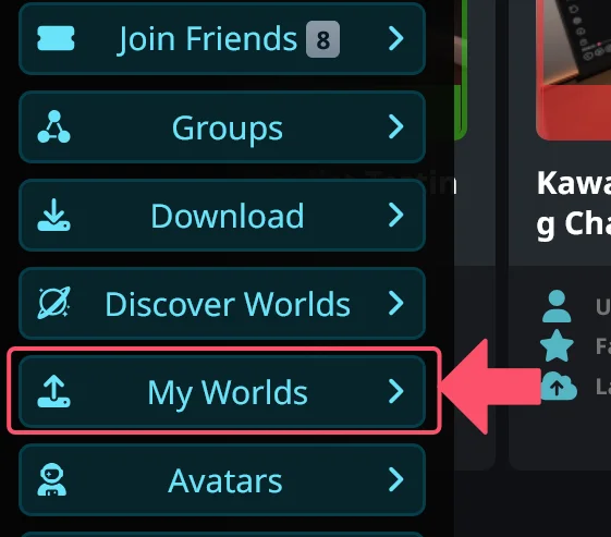 - vrchat.com にアクセスし、左メニューから 「My Worlds」 をクリック