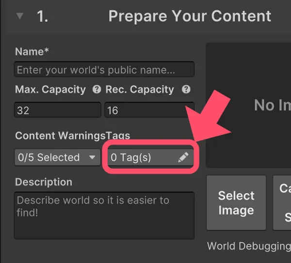 ワールドを VRChat にアップロードする際、VRChat SDK の Builder ウィンドウにある Content Warnings / Tags > Tags 欄に kawaplayer を追加してください。